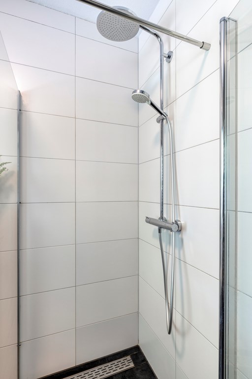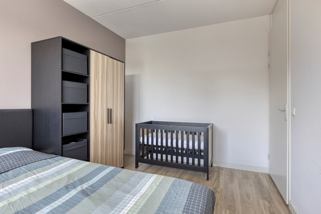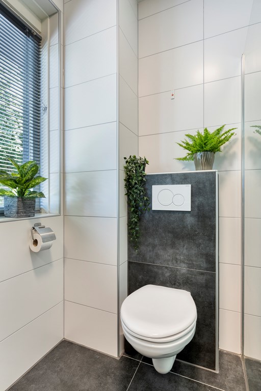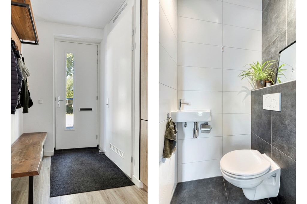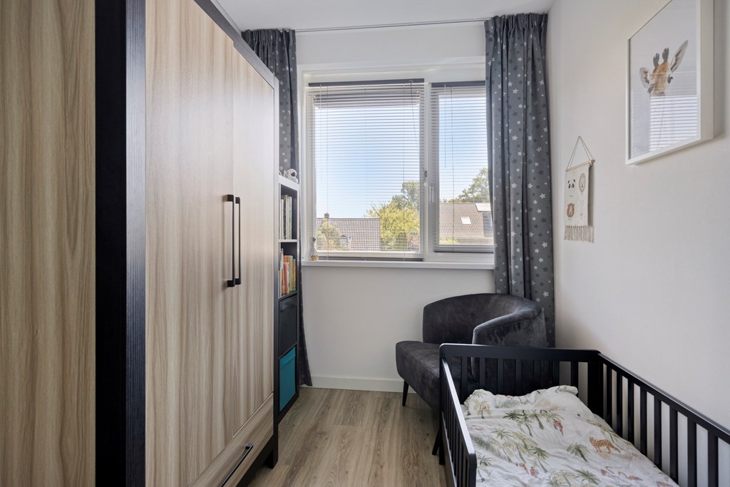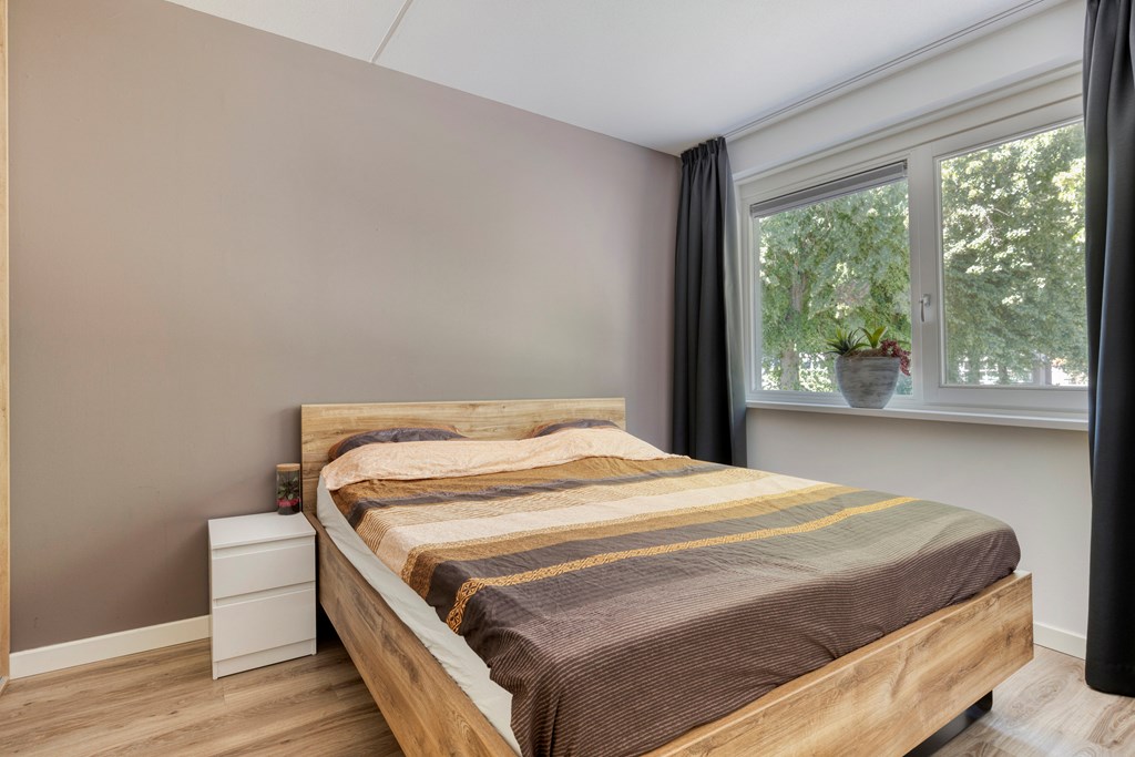 Eerste verdiepingEen vaste trap in de woonkamer brengt u naar de eerste verdieping, waar drie slaapkamers en de badkamer zijn gelegen. Deze woonlaag biedt volop ruimte voor een gezin of thuiswerkopstelling, met een prettige indeling en aangename lichtinval. Elke slaapkamer is bereikbaar via de overloop en biedt voldoende ruimte voor een bed, bureau of kast. Dankzij de grote ramen genieten alle kamers van natuurlijke lichtinval, wat bijdraagt aan een rustige en prettige sfeer. Eén van de slaapkamers beschikt bovendien over een ingebouwde kast, wat extra opbergruimte geeft zonder concessies te doen aan de leefruimte. De kamers zijn ook uitstekend te gebruiken als werkkamer of hobbyruimte. De moderne badkamer is stijlvol betegeld en praktisch ingedeeld. Hier vindt u een ruime douche met glazen wand, een zwevend toilet, een wastafelmeubel en een handdoekradiator. Alles is netjes afgewerkt en biedt u het comfort dat u dagelijks nodig heeft.