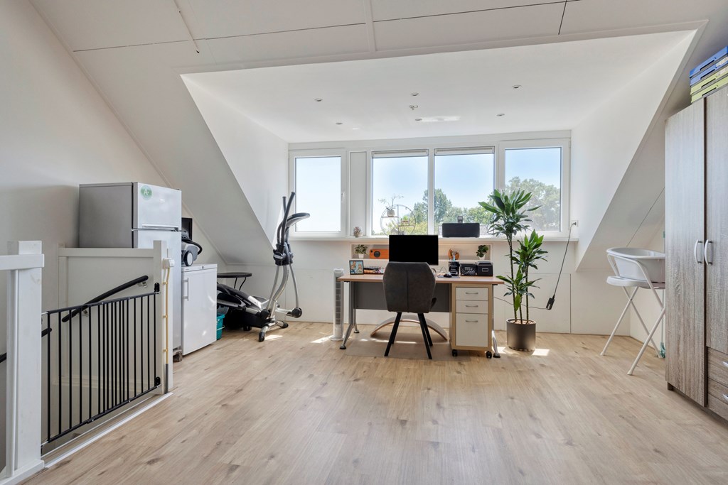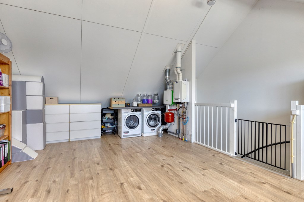 Tweede verdiepingEen vaste trap brengt u naar de ruime zolderverdieping. Deze verdieping is keurig onderhouden, heeft een hoog plafond in de nok van het dak en wordt bovendien verrijkt met een dakkapel, wat zorgt voor extra ruimte en licht. De ruimte is voorzien van witgoedaansluitingen en is naar wens in te richten als extra slaapkamer, werkruimte of hobbykamer. De mogelijkheden zijn legio.