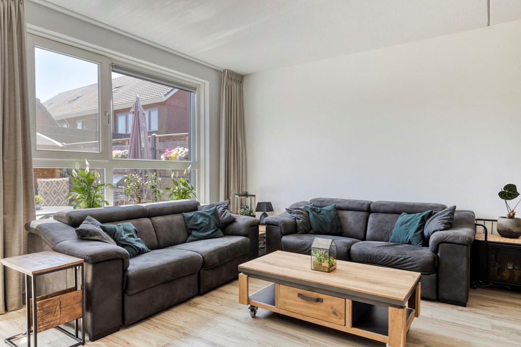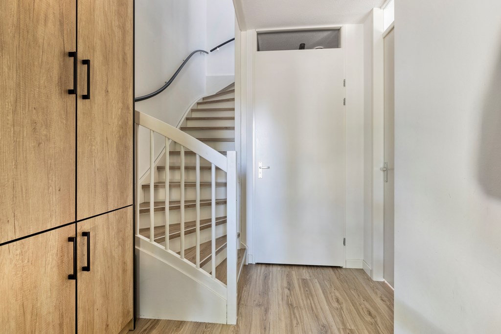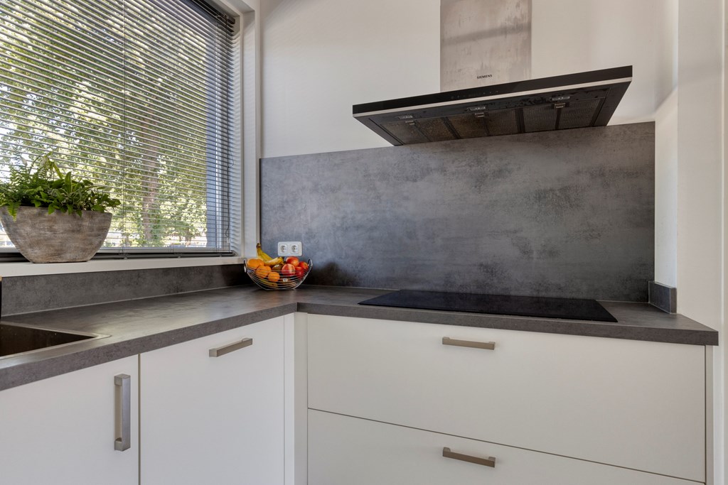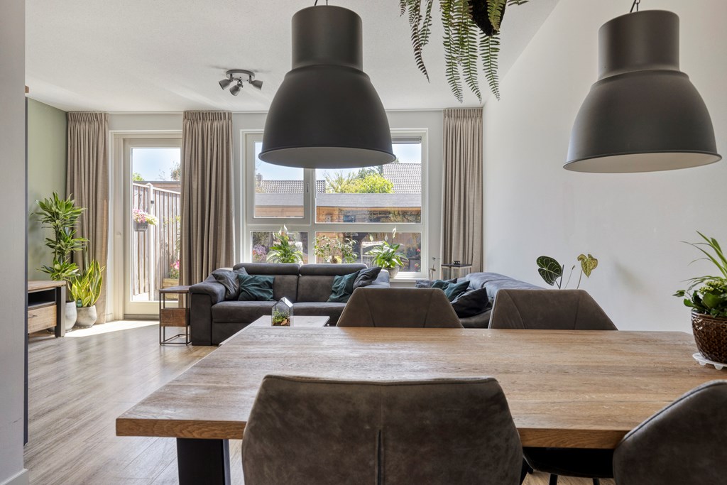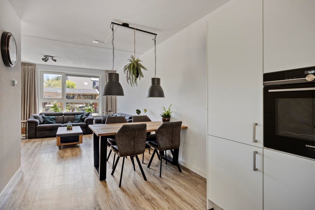 IndelingEen goed onderhouden voortuin leidt u naar de entree van de woning, waar u binnenkomt in de verzorgde hal. Deze ruimte is niet alleen een uitnodigende binnenkomst, maar biedt ook praktisch comfort. Er is voldoende plek voor een kapstok of klein opbergmeubel en vanuit hier heeft u toegang tot de toiletruimte, de trapopgang naar de eerste verdieping en uiteraard de woonkamer. Een slimme indeling die sfeer en functionaliteit combineert. De woonkamer voelt dankzij de grote raampartijen licht en open aan, met veel ruimte voor het inrichten van een comfortabele zithoek en een gezellige eethoek. De overvloed aan daglicht laat de ruimte nog groter aanvoelen en creëert een aangename woonbeleving. Een handige trapkast biedt extra opbergruimte en via de tuindeur bereikt u moeiteloos het zonnige terras aan de achterzijde. Een royale open keuken bevindt zich aan de voorzijde van de woning. De keuken is uitgevoerd in een praktische U-opstelling en biedt volop werk- en opbergruimte. Met een inductiekookplaat, afzuigkap, oven, koelkast, vaatwasser, Quooker en spoelbak is het een complete en nette keuken, waar koken een plezier wordt. Dankzij het grote raam kijkt u hier uit over de voortuin terwijl u bezig bent in de keuken.